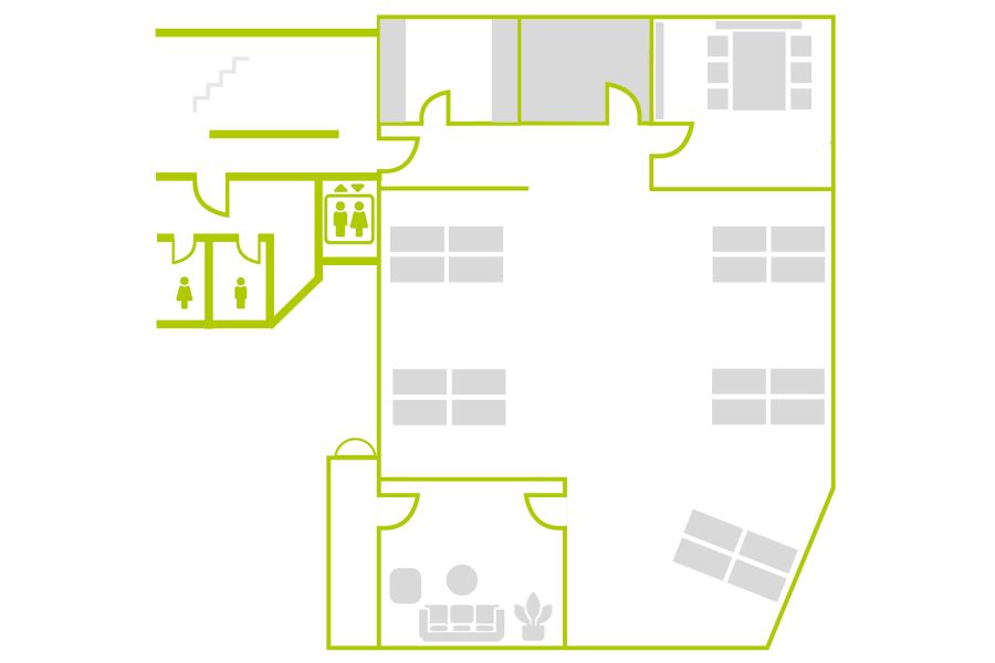 4-6 einzelne Büros für 2-4 Personen laden zum konzentrierten Arbeiten ein.